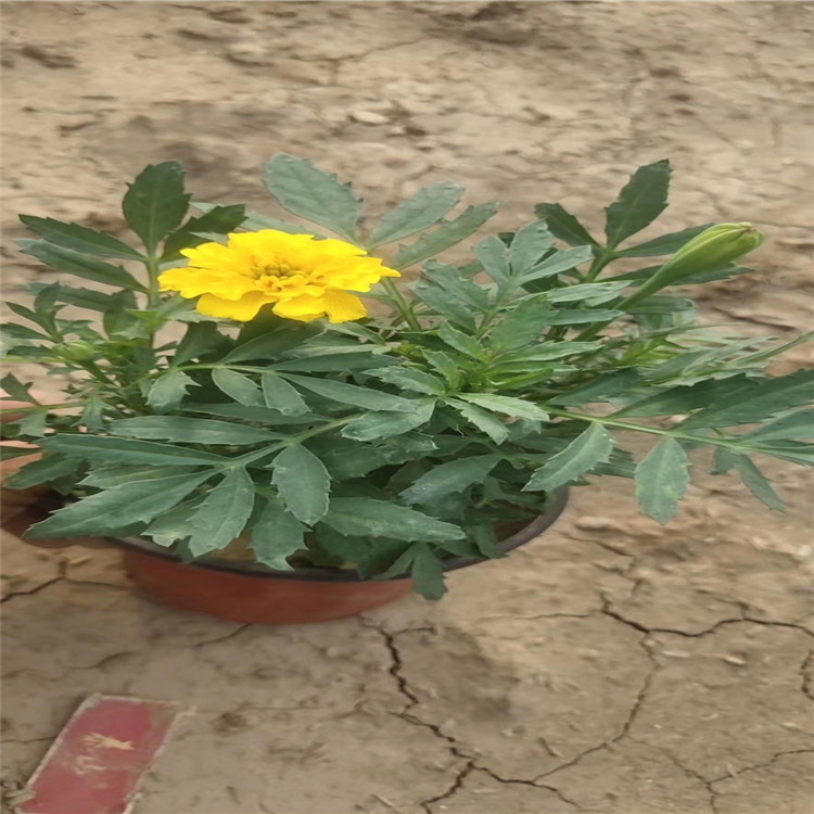 孔雀草株高30至40厘米。羽状复叶,小叶披针形。花梗自叶腋抽出,头状花序顶生,单瓣或重瓣。花色有红褐、黄褐、淡黄、紫红色斑点等。花形与万寿菊相似,但较小朵而繁多。开花时,在矮墩墩多分枝的棵儿上,黄橙橙的花朵布满梢头,显得绚丽可爱。孔雀草有很好的观赏价值,适宜盆栽、地栽和做切花。叶对生,羽状分裂,裂片披针形,叶缘有明显的油腺点。头状花序顶生,花外轮为暗红色,内部为黄色,故又名红黄草