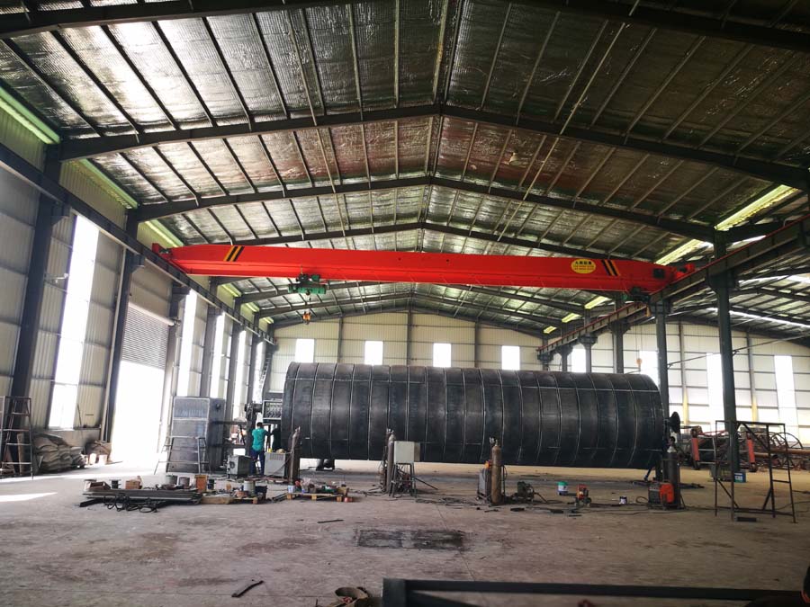 玻璃钢化粪池一体成型内加筋设备一般采购2套设备能够满足从4-100立方的生产,直径分别是3200mm(40-100立方)\2300mm(15-30立方)\1800mm(4-12立方),2套设备占地15米X35米,车间如果上行车高度必须大约6米;针对一些客户厂房高度小于6米的,我们可以不用行车脱模,制造一个升降、前进后退的底盘小车,解决脱模的问题。