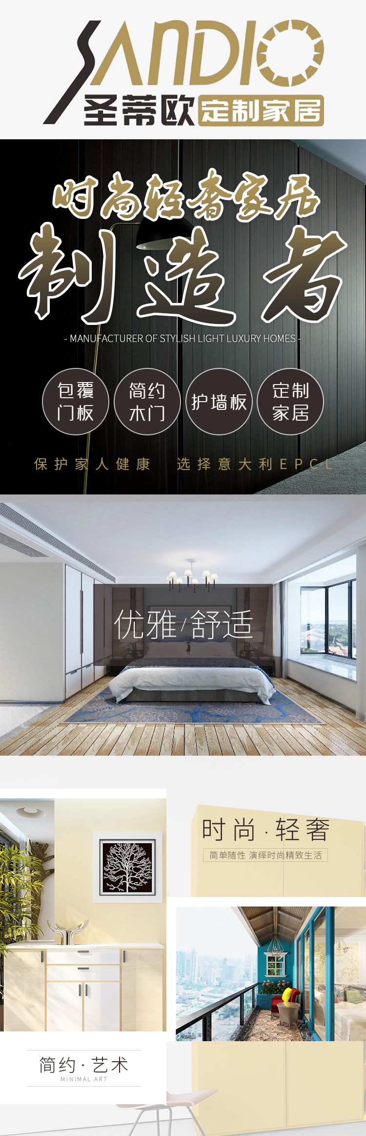 意大利EPCL实木门是圣蒂欧定制家居品牌旗下产品,采用欧洲进口实木板芯和EPCL木饰面,德国胶王PUR环保胶作为主要粘结剂,以风靡欧洲的德式T型门为基础,秉承严谨、细致、环保、服务的管控理念。