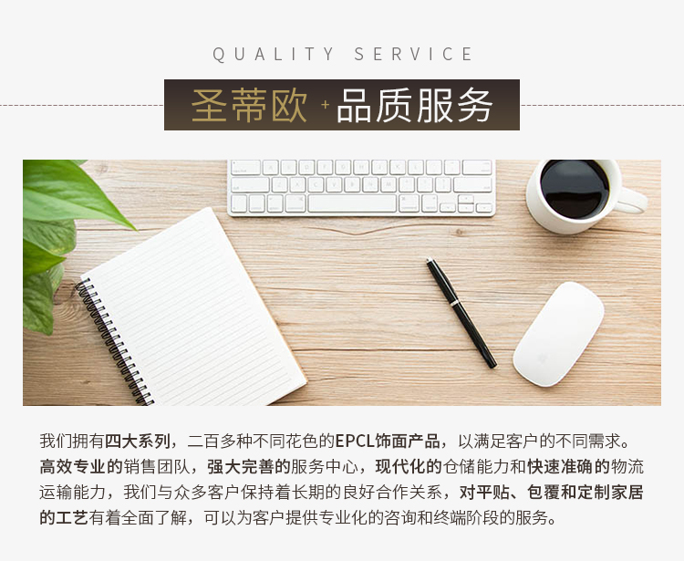圣蒂欧木门始终坚持无漆环保的工艺技术,打破传统材料上的局限,抛弃PVC、CPL等不环保产品,全系配套意大利进口EPCL原生态天然木饰面,免漆包覆,顺应时尚潮流,推出“简约系列”、“意式轻奢系列”、“新中式系列”、“田园系列”四大品类,每一个系列都是圣蒂欧木门的专属定制款。