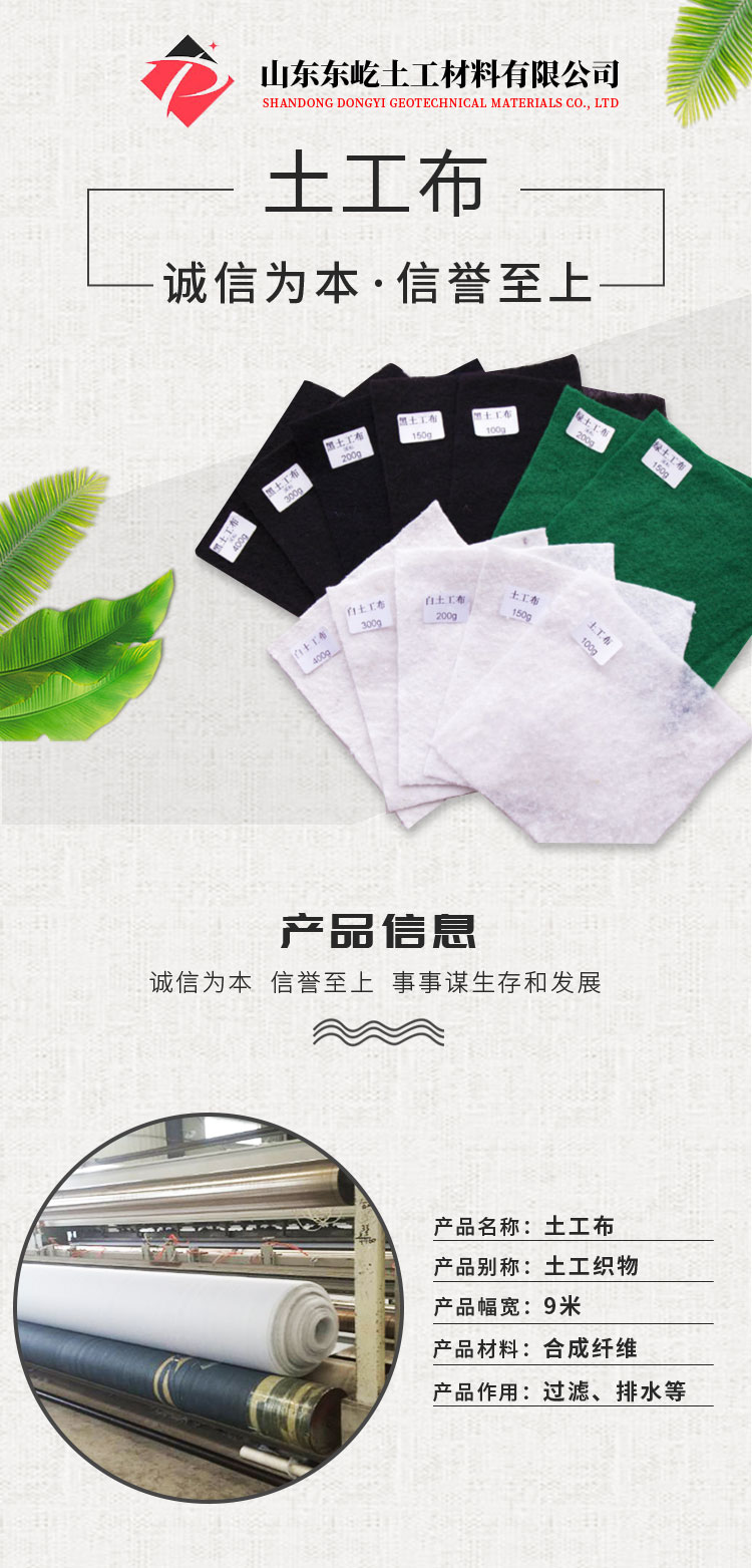 长丝土工布:长丝土工布为聚酯长丝针刺无纺土工布,不含化学添加剂,也不经热处理,是环保型的建筑材料。