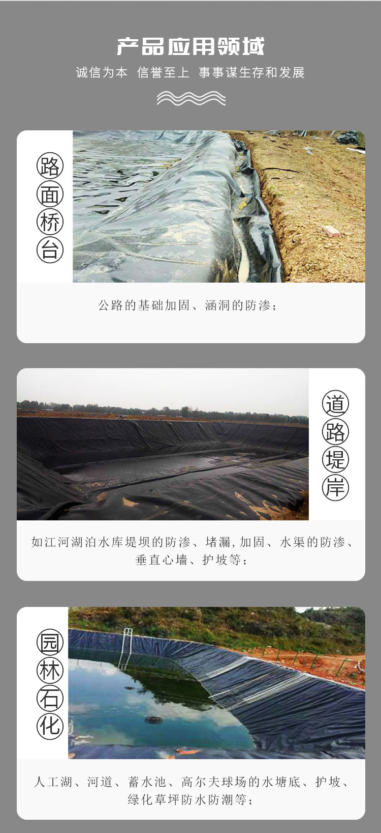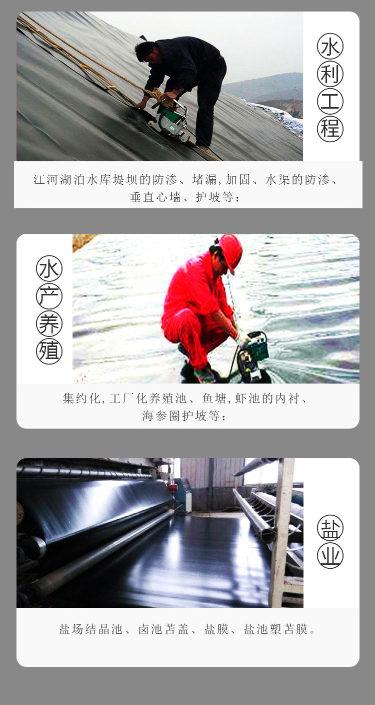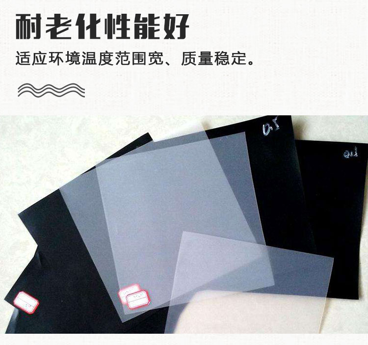 土工膜以塑料薄膜作为防渗基材,与无纺布复合而成的土工防渗材料,它的防渗性能主要取决于塑料薄膜的防渗性能。目前,国内外防渗应用的塑料薄膜,主要有聚氯乙烯(PVC)和聚乙烯(PE)、EVA(乙烯/醋酸乙烯共聚物),隧道应用中还有设计使用ECB(乙烯乙酸乙烯改性沥青共混土工膜)的,它们是一种高分子化学柔性材料,比重较小,延伸性较强,适应变形能力高,耐腐蚀,耐低温,抗冻性能好。