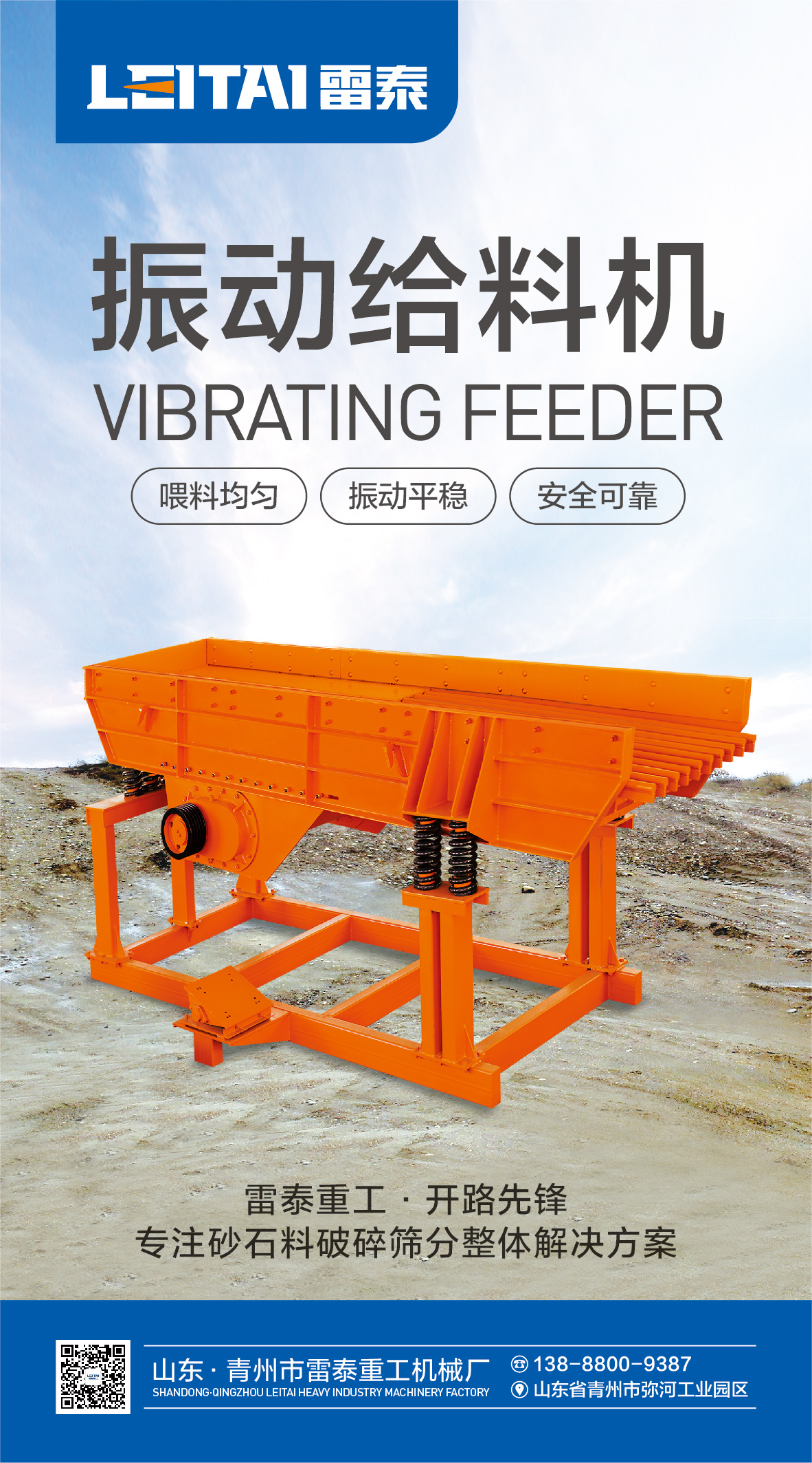 振动给料机又称振动喂料机,是指可把块状、颗粒状物料从贮料仓中均匀、定时、连续地给到受料装置中去的一种设备。在砂石生产线中可为破碎机械连续均匀地喂料,节省人工,并对物料进行粗筛分,广泛用于冶金、煤矿、选矿、建材、化工、磨料等行业的破碎、筛分联合设备中。