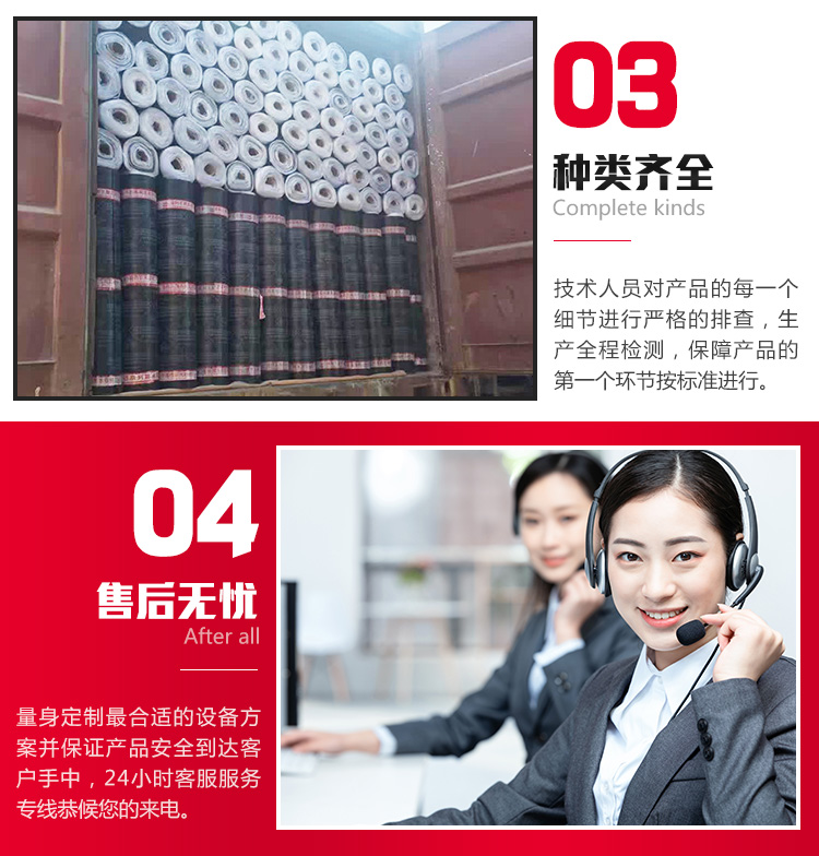 •施工方法多样,可供不同施工条件时选择●产品维护简便,损坏以少量卷材敷贴,焊牢即可