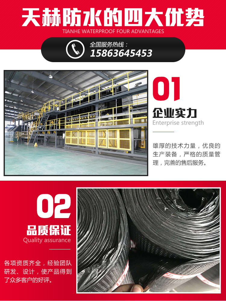 高分子聚乙烯丙(涤)纶防水卷材 外观质量 表面应平整、边缘整齐。不能有裂纹、机械损伤、折痕、穿孔及异常粘着部分等影响使用的缺陷。 在不影响使用的条件下,表面缺陷应符合下列规定: 凹痕、深度不得超过厚度的5%。b)杂质,每1m2不得超过9mm2。 适用范围 用于各类工业与民用建筑屋面、地下室、厨房、厕浴间的防水、防渗工程;水池、渠道、遂道、涵洞以 及治金化工防污染等防水、防渗工程。(不建议用于暴露工程)