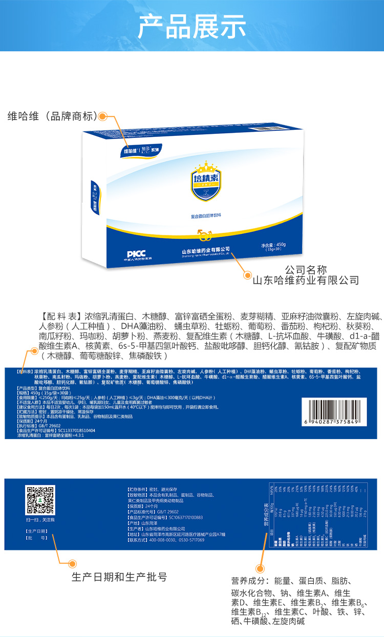 活性叶酸 复合蛋白固体饮料 哈维药业