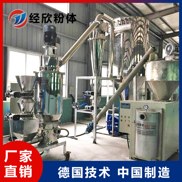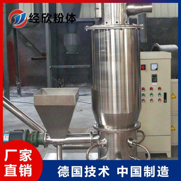 适合于莫氏硬度9以下的各种物料的干法粉碎,尤其适合于高硬度、高纯度和高附加值物料的粉碎。 颗粒加速技术的突破,极大的提高了粉碎效率,降低了能耗,过粉碎小粒形好,粒度分布窄且无大颗粒,产品粒度D97:2-75微米之间任意调节。 粉碎过程中,由于气流急剧膨胀而使气流温度降低,尤其适合于热敏性、低熔点、含糖份及挥发性物料的粉碎。 物料相互碰撞进行粉碎,有别于机械粉碎依靠刀片或锤头等对物料的冲击粉碎,因而设备无磨损,产品纯度高。