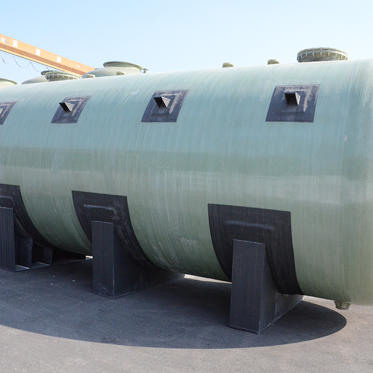 玻璃钢储罐是由高树脂含量的耐腐蚀内衬层、防渗层、纤维缠绕加强层及外表保护层组成;玻璃钢储罐内衬层采用悬臂梁喷衬工艺生产,筒体和封头为一个整体,内衬层树脂含量高,耐腐蚀性能更加优越,罐体强度高。
