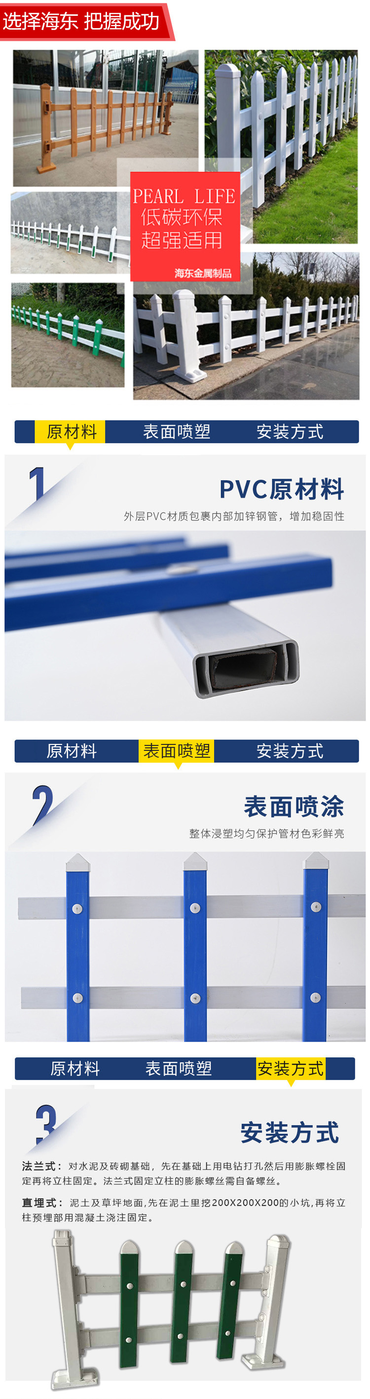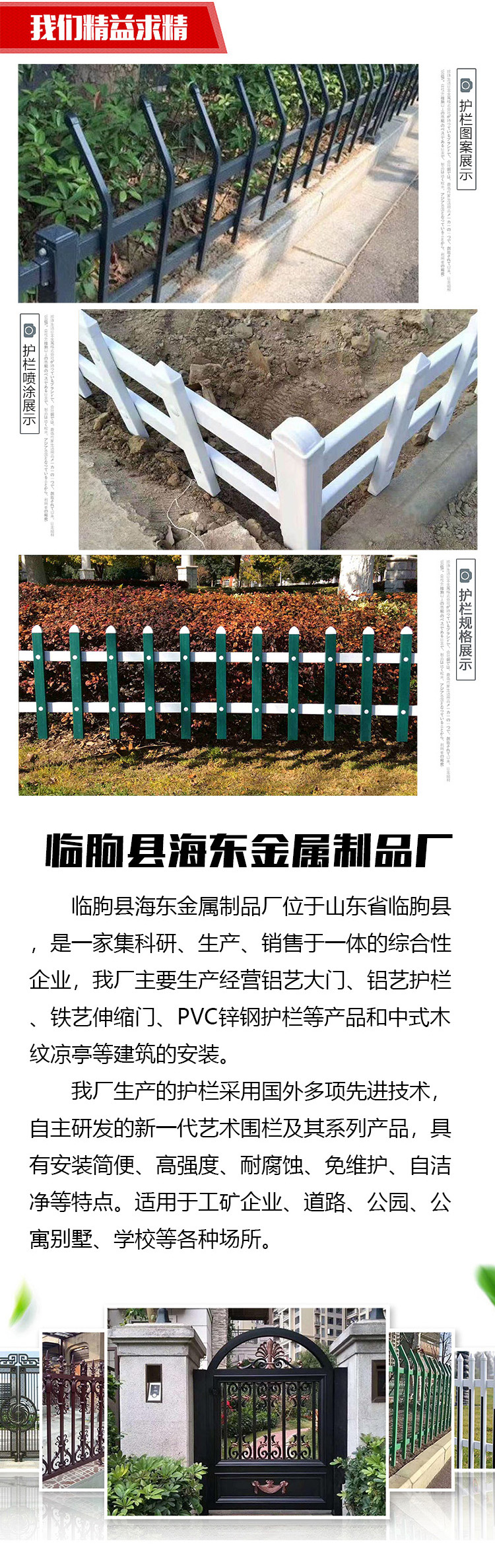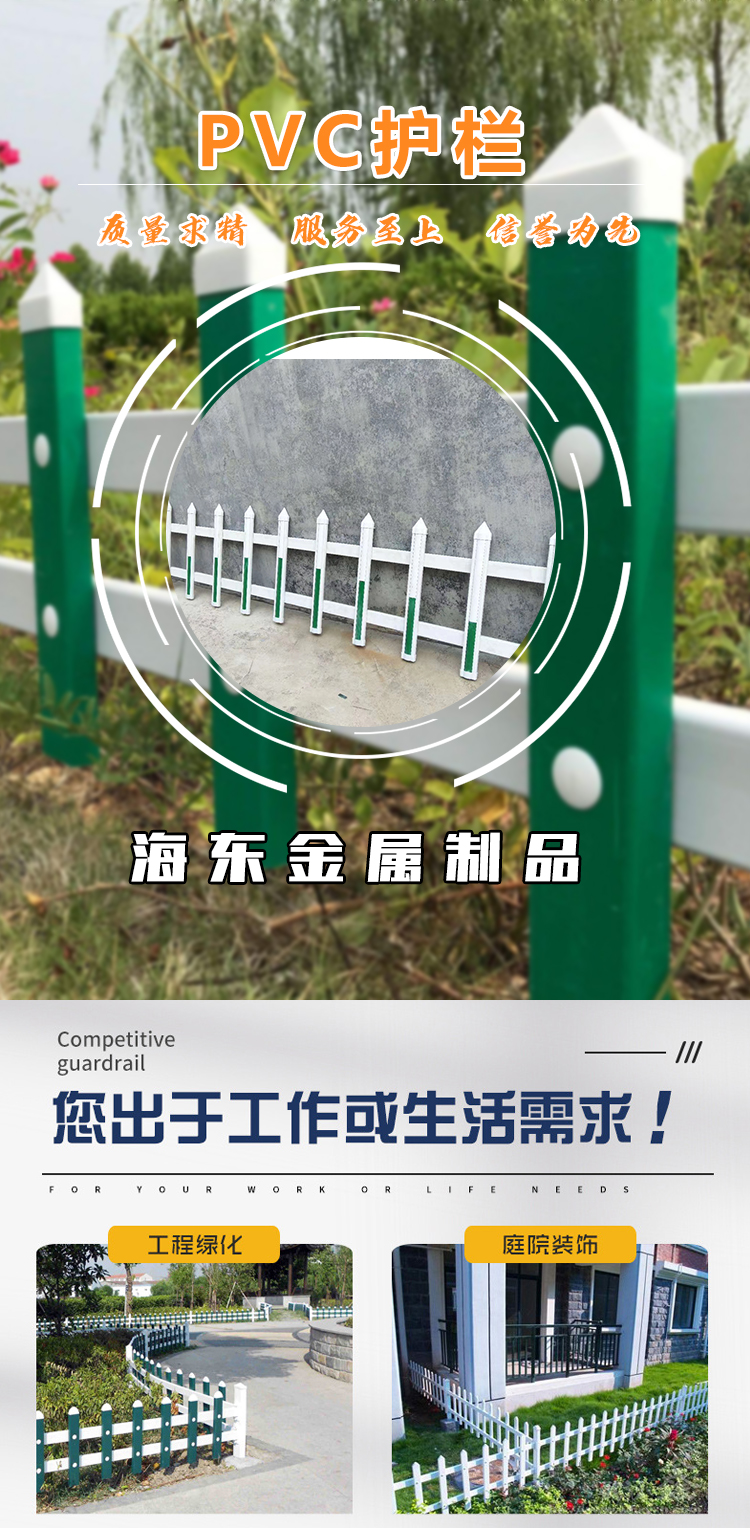 PVC塑钢护栏具有比木材好得多的强度,在横杆处均采用异型钢进行增强,再包覆特种PVC 材料,使护栏兼顾钢材的强度和美观的特性.其色彩鲜亮、表面光洁、强度高、韧性强、耐腐蚀、抗静电、不退色、不开裂、不脆化的优点,成为别具装饰效果的精品,适用于城市道路中间,洁净宽敞的街道互相映辉,筑起一道亮丽的风景线,为城市增光添彩;让高品位的城市建设更上新台阶。
