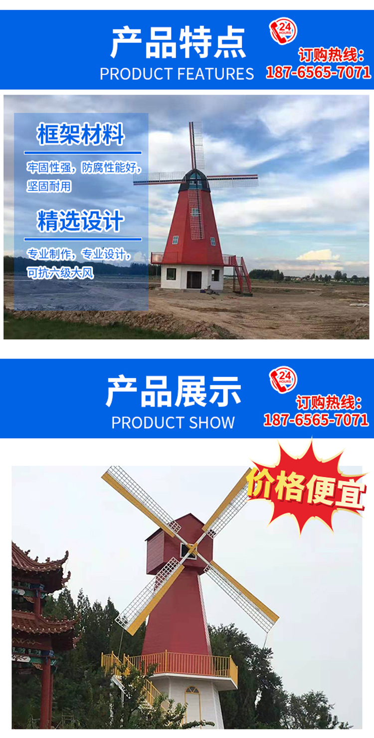 专业定制户外大型防腐木景观风车 荷兰风车 益华通