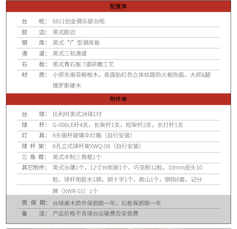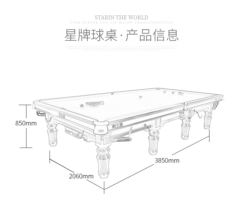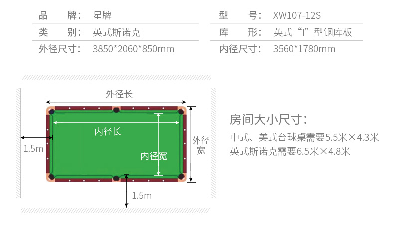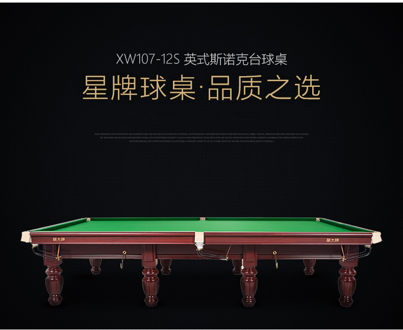 星牌桌球台 英式斯诺克台球桌 XW107-12S