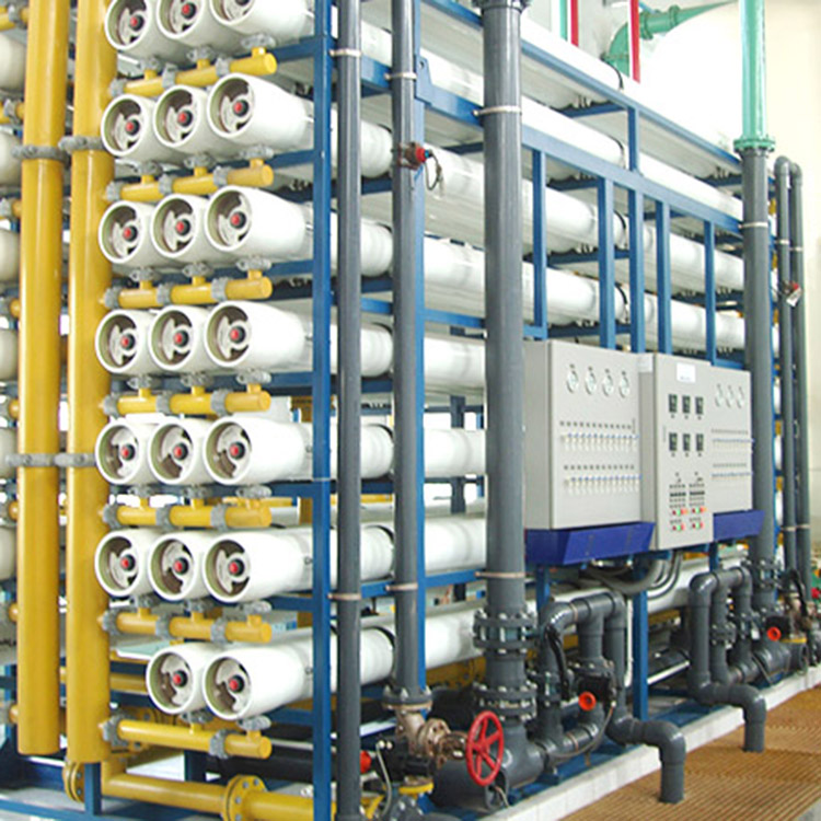 反渗透设备是将原水经过精细过滤器、颗粒活性碳过滤器、压缩活性碳过滤器等,再通过泵加压,利用孔径为1/10000μm(相当于大肠杆菌大小的1/6000,病毒的1/300)的反渗透膜(RO膜),使较高浓度的水分开成极低浓度的水(也就是纯净水)和更高浓度的水,低浓度的水使用,高浓度的水排放或资源再利用,同时将工业污染物、重金属、细菌、病毒等大量混入水中的杂质全部隔离,从而达到饮用规定的理化指标及卫生标准,产出至清至纯的水,是人体及时补充优质水份的佳选择.由于RO反渗透技术生产的水纯净度是目前人类掌握的在饮用水制造方面的一切制水技术中高的,洁净度几乎达到100%,所以人们称这种产水机器为反渗透纯净水机。当然还有一些更高纯度的纯水制造技术(如EDI,抛光混床等)不适用于饮用水生产。