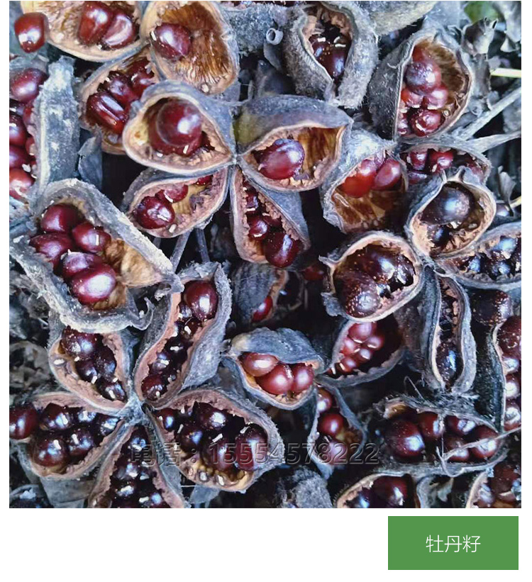 牡丹种子在8月份开始成熟,这时要立即采下沙藏,避免干缩,然后放于低温处进行保存。可将种子用1%的赤霉素处理48小时,或5℃左右的低温以解除下胚轴休眠,播种后第二年春幼苗即可萌发。