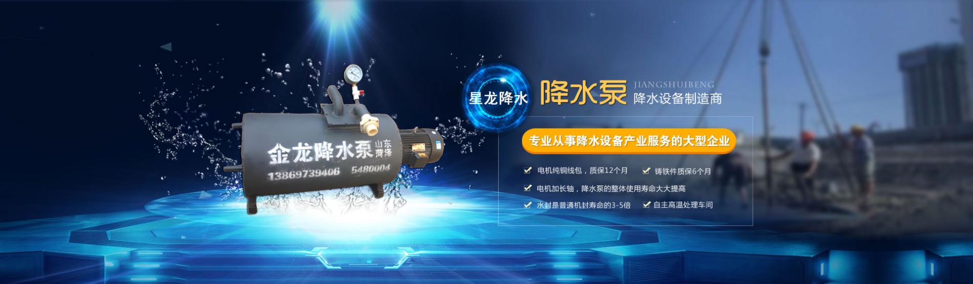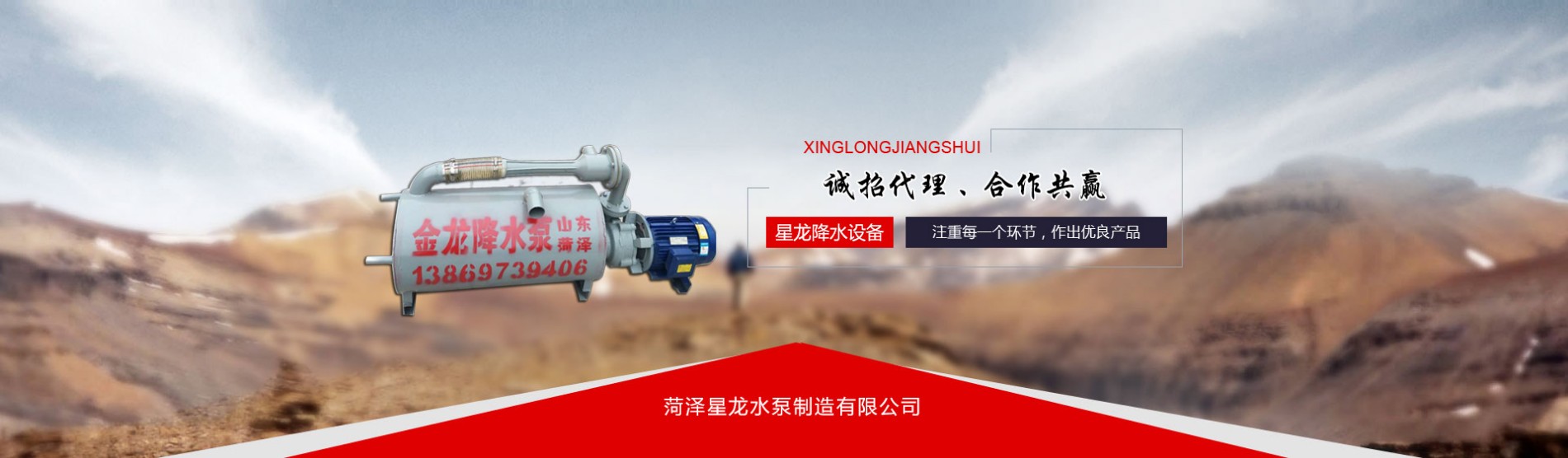 菏泽星龙水泵制造有限公司前身创建于1996年,位于驰名中外的牡丹之都—山东菏泽,是专业从事降水设备产业一条龙服务的企业,(下设钻井队和工程地基降水队二十余个)。 菏泽星龙水泵制造有限公司已在技术、生产销售上实现联体,以高质量为生命线,以质量和信赖为宗旨,以“星龙”精神贵在认真的企业精神,强硬的技术,注重每一个环节,作出优好产品,立足齐鲁大地,展望神州走向世界。 菏泽星龙水泵制造有限公司以客户至上,守信用重合同,以完善的售前售后服务让客户满意的理念,来做大做强自己的创业路。